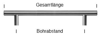 Beispiel der Griff mit einem Bohrabstand 1152mm = Bohrabstand 2 x 576mm bei einer Gesamtlänge von 1202mm