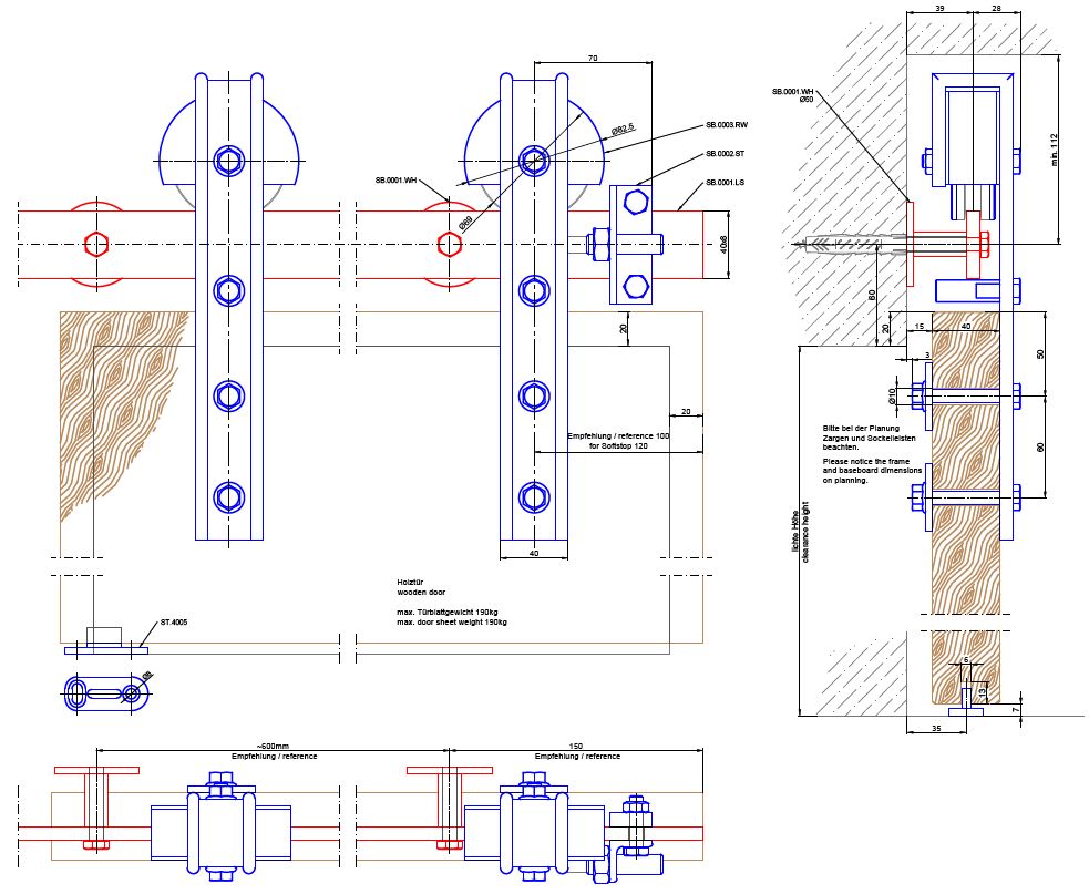 Produktinformationen "Schiebetürbeschlag-Set SB0003 für Holztüren Dicke 30-50mm"