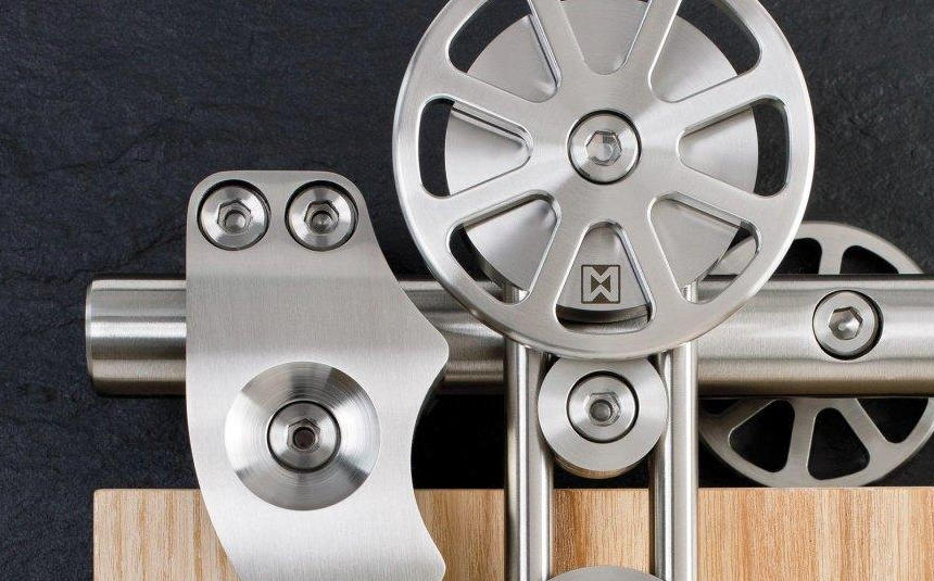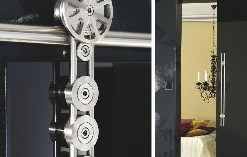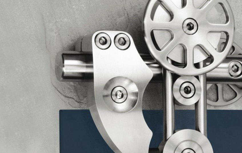 Schiebetürbeschlag aus feinstem massivem Edelstahl Korn 600 fein geschliffen/ poliert, bis Türgewicht 175kg: