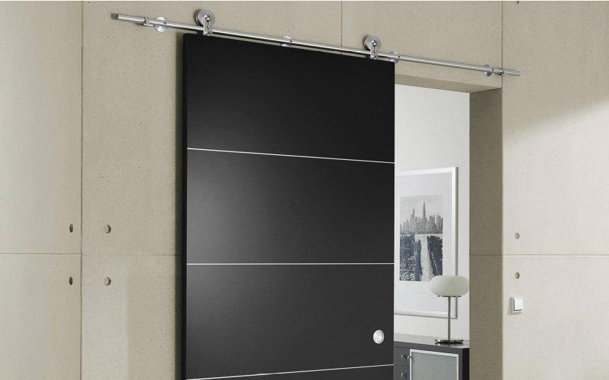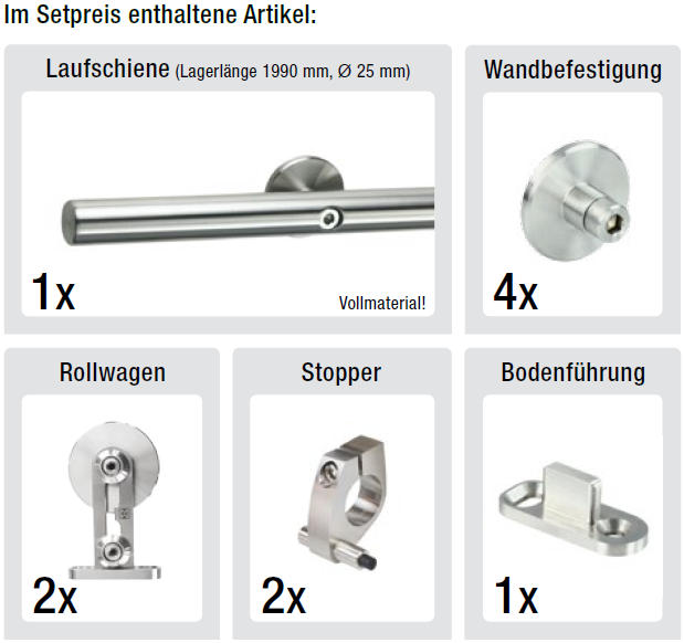 Schiebetürbeschlag aus feinstem massivem Edelstahl Korn 600 fein geschliffen, bis Türgewicht 135kg: