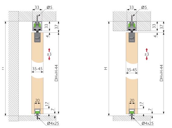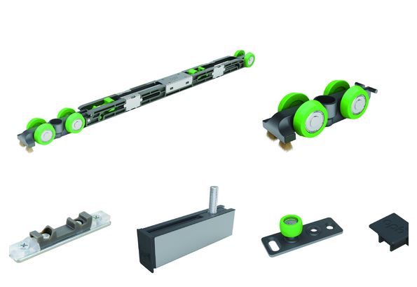 Schiebetürsystem SPACESHIP Ausführung Deckenmontage einglassen mit beidseitiger Dämpfung, für Holztüren 35 - 45 mm, ab Türbreite 580mm / bis Türgewicht 80 kg, Höhenverstellung ±3mm.