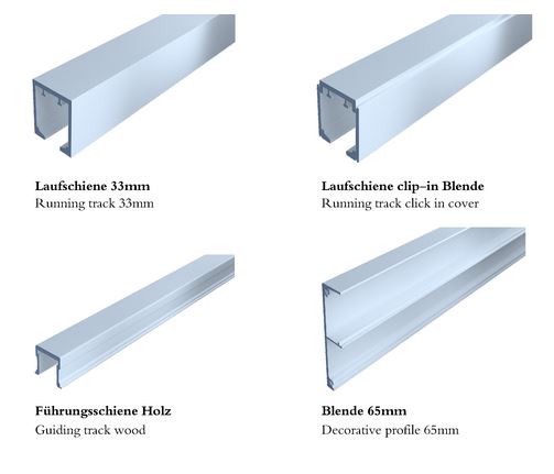 1 Laufschiene Aluminium eloxiert mit Wandbefestigungen, verschiedene Längen verfügbar - bitte auswählen