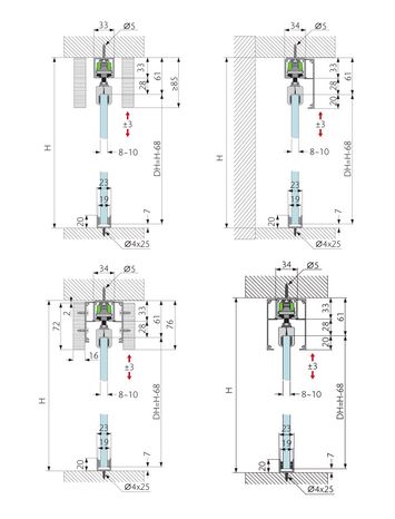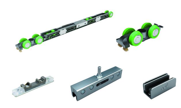 Schiebetürsystem SPACESHIP Ausführung Deckenmontage mit beidseitiger Dämpfung, für Glastüren 35 - 45 mm, ab Türbreite 580mm / bis Türgewicht 80 kg, Höhenverstellung ±3mm.