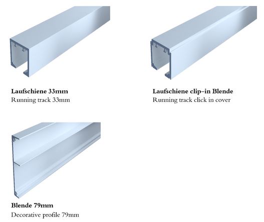 1 Laufschiene Aluminium eloxiert mit Wandbefestigungen mit 79mm Blende