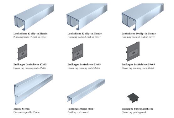 1 Endkappen für die Laufschiene, verschiedene Breiten (47/ 53/ 59) verfügbar - bitte auswählen