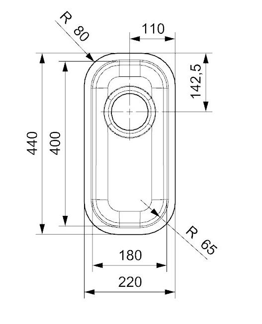 Spüle IB 1840 CC ohne Überlauf, Maße 220x440mm