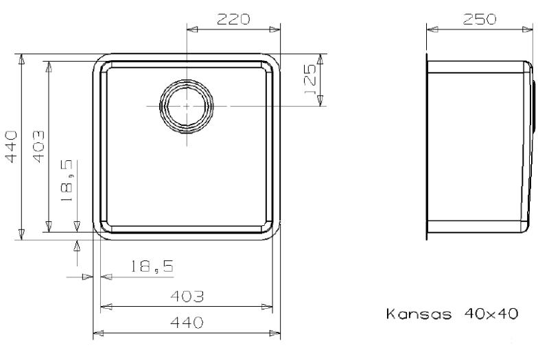 Produktinformationen "Spüle Kansas 4040/5040 CC ohne Überlauf, Beckentiefe 250mm"