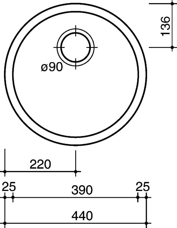 Produktinformationen "Spüle L18 390KGCC ohne Überlauf, Durchmesser 440mm"