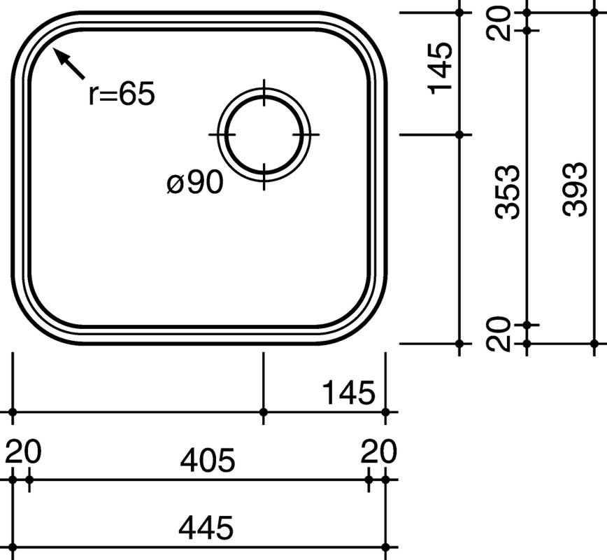 Spüle L18 4035KG CC ohne Überlauf, Maße 445x393mm