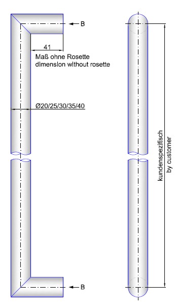 Die im Shop dargestellten Längen/Achsmaße sind als Anhaltspunkt gedacht. Diese Griffe werden auch individuell nach Ihren Vorgaben gefertigt.