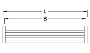 Ausladung 120mm, 3 Ablagestäbe Durchmesser 14mm, 2 Haltestäbe Durchmesser 22mm, inkl. Befestigungsmaterial. Länge 450mm = Bohrmaß 428mm, Länge 600mm = Bohrmaß 578mm, Länge 750mm = Bohrmaß 728mm. Maßfertigungen auf Anfrage.