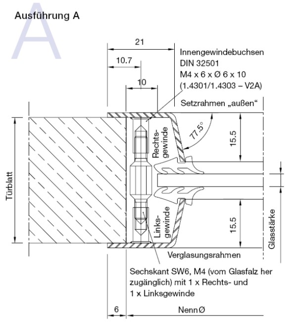 Bullaugen Edelstahl Typ B für einseitig sichtbare Verschraubung