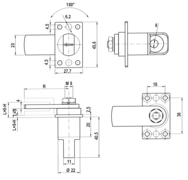 Linke und rechte Ausführung, Drehung 180 Grad, für Vorhangschlösser mit Bügelstärke bis 8mm. Lieferung ohne Vorhangschloss und Adapterplatte.
