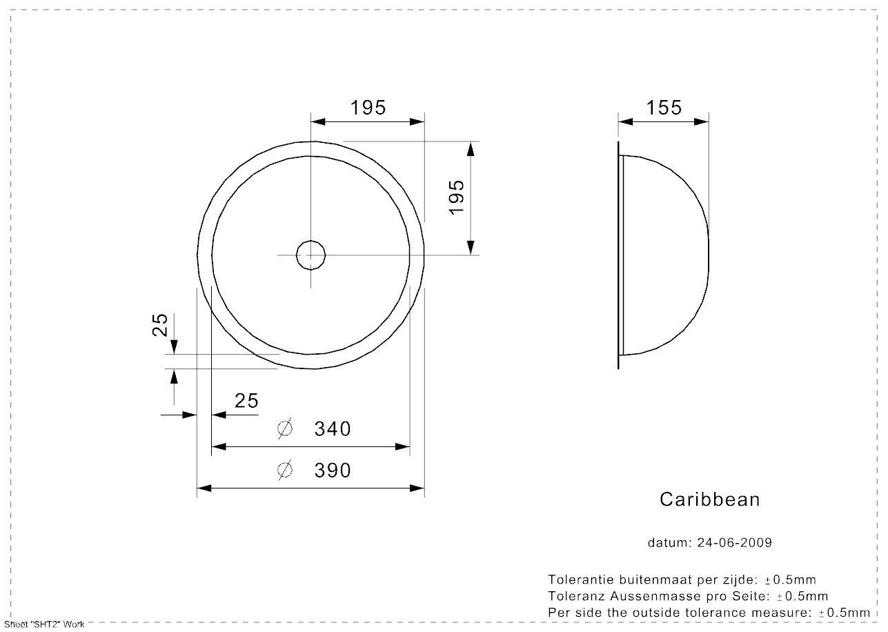 Durchmesser 390mm, Beckentiefe ca. 155mm, für Schrankbreite 400mm.